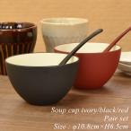 スープカップ ペアセット アイボリー/ブラック・レッド モダン 漆器 あたかや 日本製 食洗機対応 スープ サラダ ギフト 結婚祝 贈り物 食器セット 名入れ可