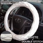 【在庫有・即納可】ハンドルカバー アルト HA36S HA36V向け ステアリングカバー ホワイト 36-37CM キルト ダブルステッチ 太巻 汎用