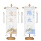 【家紋入れ可能】刺繍名旗台付きセット 兜/玉龍/猛虎/昇鯉 特中 名前旗 刺繍入り 旗サイズ40cm 【五月人形】【男の子】