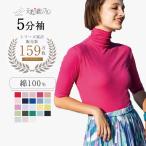 天使の綿シフォン 天使のシフォン 5分袖ハイネックカットソー 半袖 5分袖 5分丈 カットソー 婦人服 綿100% コットン 軽量 コンパクト 日焼け対策 熱中症対策