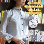 メンズライクなレディースシャツ マニッシュシャツ ブラウス ゆったり着られる 長袖 スーツ イージーケア レギュラーカラー 白 ホワイト 青 ブルー [M便 1/2]