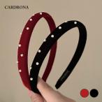 【2023春夏新作】カチューシャ パール ベロア 痛くない ベルベット パール 細カチューシャ 幅狭 黒パール 赤 シンプル ベロア 大人 ドゥ パリ