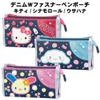 デニム Wファスナー ペンポーチ サンリオキャラクターズ キティ シナモロール ウサハナ かわいい 【za1485】