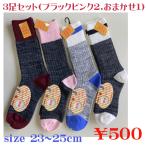 あたたかソックス レディースソックス あったか綿混靴下-足元ぽかぽか靴下 23-25cm 凄暖 おまかせ3足セット(ブラックピンク2,おまかせ1)