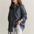 クーポン レディース 長袖 トップス ストライプ ブラウス ロングシャツ カットソー ゆったり 体型カバー 夏秋 通勤 オフィス OL おしゃれ きれいめ 送料無料