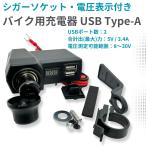 バイク USB Type-A 充電器 2ポート 合計出力 3.4A シガーソケット シガーライター バッテリー電圧計 付 電源 防滴 防塵