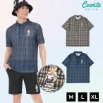 [Teddy Bear] ハーフジップポロシャツ 半袖 チェック柄 刺繍ロゴ テディベア メンズ クアルトユナイテッド ゴルフウェア 25SS