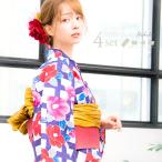 【先行予約/5月中旬より順次発送予定】 浴衣 レディース セット 簡単(ゆかた・しわ兵児帯・下駄・着付け本・腰ひも)綿 紺 紫 ピンク 白 青