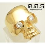 18金ゴールドメッキ CZアイキーススカルリング シルバー925 ジルコニア