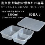 テイクアウト容器 汁漏れに強い PP四角 弁当容器 仕切り 3分割 1200ml 50個 電子レンジ可 嵌合蓋付セット