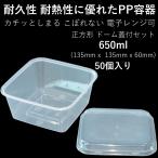 テイクアウト容器 汁漏れに強い PP容器正方形タイプ 650ml 50個 電子レンジ可 ドーム型篏合蓋付きセット