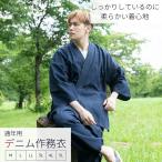 [江戸てん]作務衣 デニム生地 (綿100%)しっかりしているのに柔らかい さむえ 無地 通年 メンズ 紺