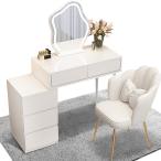 ドレッサー 特大 4点セット 100cmテーブルセット チェアー付きLED女優ミラー 組み立て式 岩盤天板 大容量収納 新生活応援