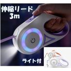 ペットリード LEDライト付き 伸縮リード3m 巻き取り式ドッグリード 犬用リード 自動巻き お散歩 ペット用品