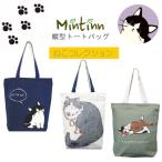Mintinn キャンバストートバッグ 縦型トート猫 天ファスナー付き ポケット 手提げデザイントート 帆布 ねこ A4サイズ可 通勤通学 ミントイン ネコ