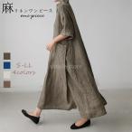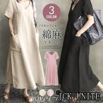 マキシワンピース レティース 半袖 無地 ワンピース Vネック ゆったり 綿麻ワンピース 体型カバー 夏物 ロングワンピース シンプル おしゃれ