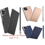 iPhone 14 Plus / 14 / 13 pro max ケース 手帳型 薄型 ストラップ付き