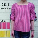 【K】 日本製 ストライプスクエアネックプルオーバー5分袖ブラウス レッド イエロー