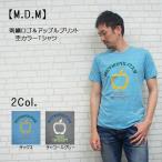 杢カラー刺繍&プリントTシャツ メンズ サックス チャコールグレー M.D.M