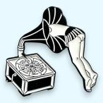 女の子 蓄音機 ピンバッジ ピザ レコード ピンズ ポスト投函