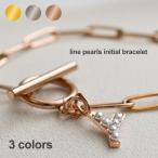 ブレスレット イニシャル パール ステンレス レディース ゴールド シルバー ローズゴールド ピンクゴールド プチプラ 長さ 調節 オーダー クリップチェーン