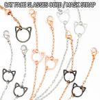 メガネチェーン おしゃれ レディース ネコ 長さ調節可能 かわいい マスクチェーン ステンレス ローズゴールド シルバー ブラック 黒猫 60cm 65cm 70cm