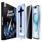 【覗き見防止】 iPhone 15 ガラスフィルム 2枚セット ガイド枠付き 自動吸着 貼りやすい iPhone15 フィルム 飛散防止 アイフォン