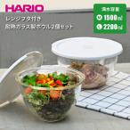 日本製 HARIO レンジフタ付き 専用蓋付 耐熱ガラス製 ボウル 2個セット 満水容量 1,500ml・2,200ml 調理 料理 菓子 ボール