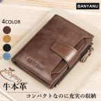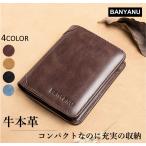 本革 財布 メンズ 二つ折り 薄型 レザー 牛革 薄い コンパクト スキミング防止 運転免許証一体型カードホルダー