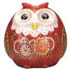 九谷焼フクロウ 2.5号ふくろう 赤茶盛K9-1684