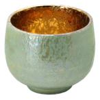 \在庫限り/ 九谷焼 双鳩窯ぐい呑み 釉滴金彩 グリーンSQ-184