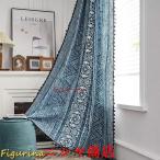 カーテン 遮光 遮熱 おしゃれ ボヘミアン風 北欧風 断熱 綿麻 薄手 透けない ナチュラル 可愛い 半遮光 フリンジ付 フック 腰窓