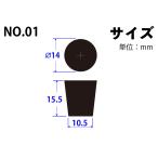 天然ゴム栓 黒 No01 14mm×10.5mm×15.5Hmm 品番:101-51002