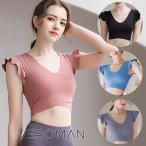 ヨガウェア トップス カップ付き 半袖 かわいい フリル ショート丈 フィットネス バレエ ヨガトップス クロップド丈 ヨガシャツ ppi-ssd12 VEROMAN FIT