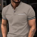 シャツ ポロシャツ メンズ 半袖 立ち襟 半袖ポロ ライン入り ポケット カラー配色 ゴルフ 大きいサイズ アメカジ おしゃれ スポーツ サマー 夏 夏服