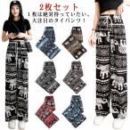 2枚セット タイパンツ 象 レディース 夏 ワイドパンツ 薄手 接触冷感 涼しい ゾウ ぞう 象柄 部屋着 ルームウェア ワイド ゆったり 体型カバー