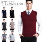 ニットベスト メンズ ニット ベスト トップス チョッキ Vネック レイヤード ビジネス スクール ウール混 通勤 通学 春 秋 冬