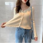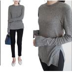 レディース リブニット 薄手 無地 袖裾メロー仕上げ ロングスリーブ 長袖