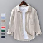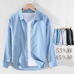 綿麻シャツ メンズ シャツ リネンコットン カジュアルシャツ トップス 長袖 清涼 爽快 春 夏 秋 通勤 父の日