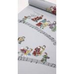 麻 綿 長襦袢 洗える 反物 友禅 カジュアル レトロ 可愛い スズメ 雀 音楽 楽譜 グレー 水通し加工