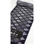 名古屋帯 八寸 米沢織 絹 和紙 日本製 未仕立て 全通 花菱 花 ひし形 紫 ネイビー パープル
