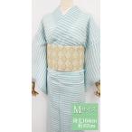 夏 着物 麻 近江ちぢみ プレタ 洗える 仕立て上がり Mサイズ ボーダー チェック ブルー