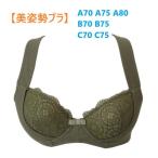 「美姿勢ブラジャー」 ワイヤー入り 補整下着 (カーキ) 広幅ストラップ バッククロス 脇高 補正下着(A70 A75 A80 B70 B75 C70 C75) 新品 (送料無料)
