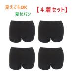 【4着セット】ブラック レディース 1分丈パンツ 見えてもOK(見せパン) オーバーパンツ 通勤 通学 スカート下 (M-L L-LL) 新品(送料無料)