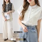 バンドカラーシャツ 半袖 レースレイヤード風 トップス レディース 秋カラー【lstp205-374】【即納:1-5営業日】【送料無料】ユ込2