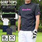 ゴルフウェア モックネックシャツ メンズ GIORNO SEVEN ジョルノセブン ハイネック ゴルフ 接触冷感 半袖 蛍光ロゴプリント トップス ポロシャツ 春夏