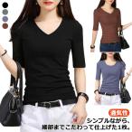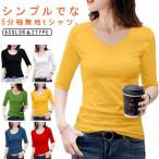 Vネック 五分袖tシャツ 5分袖 コンパクト カットソー トップス 半袖 夏 tシャツ Uネック レディース 無地tシャツ タイト 細身 ストレッチ