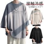 tシャツ メンズ クルーネック 5分袖 tシャツ 7分袖 ドライ カットソー ビッグシルエット 丸首 接触冷感 黒 ファッション ルーズ 半袖tシャツ