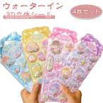 【4枚セット】ウォーターイン 3D 立体 シール 可愛い ぷっくり ごほうびシール DIY 手帳用 日記帳用 キラキラ 女の子 かわいい デコシール