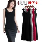 タンクトップワンピース ひざ下丈 膝下 タイト ノースリーブ レディース 無地 シンプル Uネック ワンピース きれいめ 細身 おしゃれ インナーワン